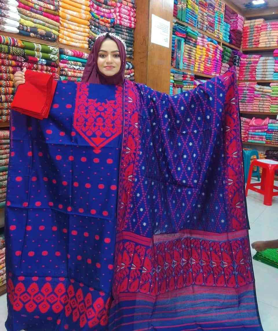 অরিজিনাল মিনাকারি জামদানী থ্রি পিছ